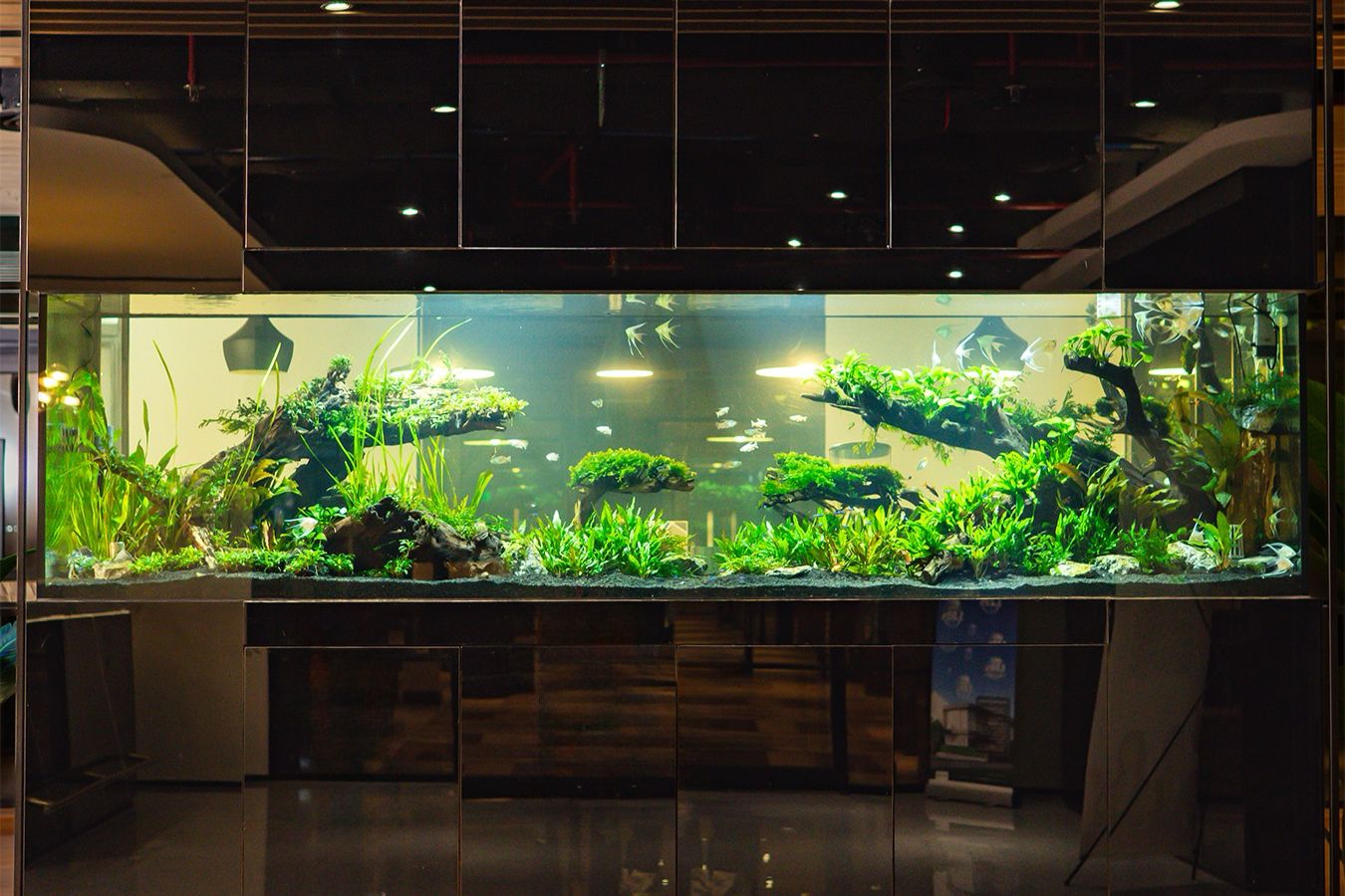 Di sejumlah gedung perkantoran premium, akuarium mulai diintegrasikan dalam desain ruang, terutama di area lobi, ruang tunggu, hingga ruang eksekutif. Keberadaan elemen air dan kehidupan akuatik dinilai mampu menghadirkan suasana lebih dinamis, membantu mereduksi stres, sekaligus memperkuat kesan profesional bagi perusahaan.